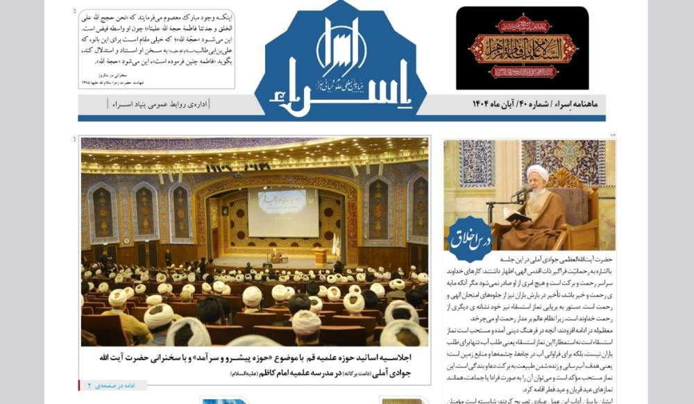 پایگاه اطلاع رسانی اسراء: به همت اداره روابط عمومی و امور بین الملل بنیاد اسراء، ماهنامه اسراء که مروری است بر اخبار و فعالیت های ماهانه بنیاد اسراء (شماره 21، دی ماه 1402) آماده و منتشر شد.